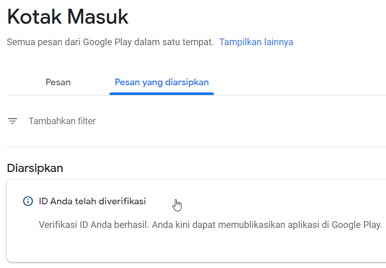 8. Tahap akhir setelah pembayaran adalah melakukan verifikasi akun dengan mengupload KTP. Buka akun anda di halaman Google Developer Console9. Berikut notifikasi jika akun godev telah di verifikasi